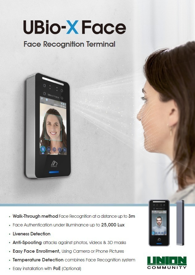Nitgen UBio-X Face supports a deep learning algorithm and a face authentication from a distance up to 3 meters and maximum 4 people at the same time when users walk through gates.