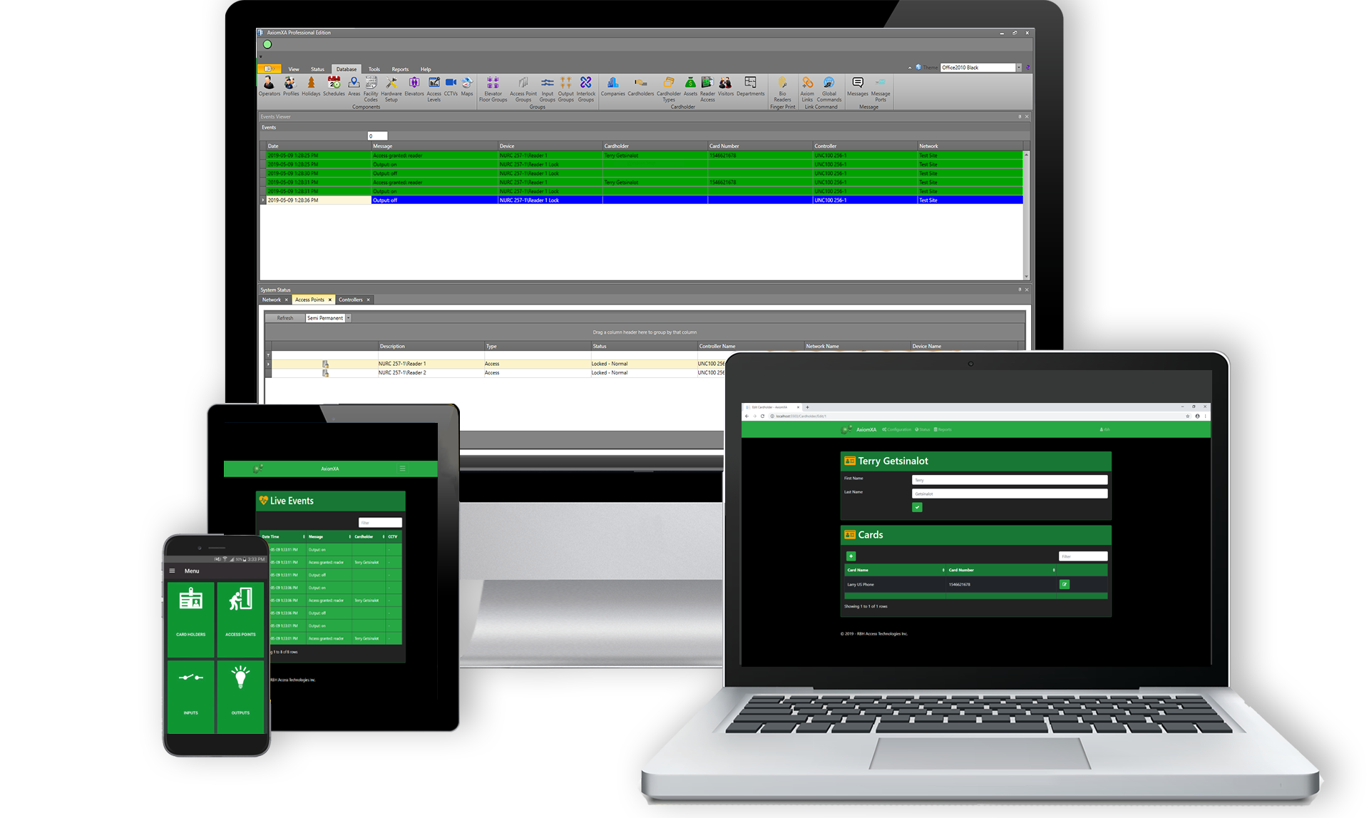 - Control and Reporting – only for assigned cards, doors and other security hardware